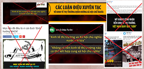 Không những vậy, một số cá nhân, tổ chức ở bên ngoài còn tổ chức livestream dưới dạng “hội luận” với thành phần tham gia được gắn mác “chuyên gia”, “luật sư”, “tiến sĩ”… Mục đích không gì khác là bôi đen, đả phá nền kinh tế thị trường định hướng XHCN ở Việt Nam, cổ xúy việc Hoa Kỳ chưa công nhận quy chế kinh tế thị trường cho Việt Nam. Một số phần tử phản động ở bên ngoài nhân cơ hội này đưa ra các luận điệu kiểu như “độc tài thì làm gì có cơ chế kinh tế thị trường”, “muốn có kinh tế thị trường phải có đa nguyên, đa đảng”…