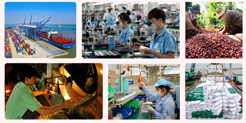 Tổng kim ngạch xuất nhập khẩu bình quân giai đoạn từ năm 1986 đến năm 2005 mới đạt 20,7 tỉ USD/năm, thì riêng năm 2022 đã đạt 732,5 tỉ USD, năm 2023 đạt 681 tỉ USD. Cán cân thương mại hàng hóa đã chuyển từ nhập siêu sang suất siêu 8 năm liên tục kể từ năm 2016, riêng năm 2023, xuất siêu đạt 28 tỉ USD, thuộc nhóm 20 quốc gia có quy mô thương mại hàng đầu thế giới; bội chi ngân sách nhà nước, nợ công, nợ chính phủ, nợ nước ngoài của quốc gia được kiểm soát tốt; nợ công năm 2023 ở mức khoảng 37% GDP, thấp hơn nhiều giới hạn quy định. Về thu hút đầu tư nước ngoài, năm 2023 thu hút được trên 39,4 tỉ USD, vốn thực hiện đạt 23,2 tỉ USD, lọt vào nhóm 20 nước dẫn đầu thế giới về thu hút FDI.