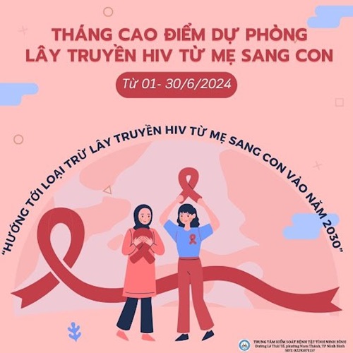 “Hướng tới loại trừ lây truyền HIV từ mẹ sang con vào năm 2030” Đây là chủ đề Tháng cao điểm dự phòng lây truyền HIV từ mẹ sang con năm 2024 do Bộ Y tế - Cơ quan thường trực phòng, chống HIV/AIDS của Ủy ban Quốc gia phòng, chống AIDS và phòng chống tệ nạn ma tuý, mại dâm ban hành tại công văn số 2652/BYT-AIDS ngày 15/5/2024. Tháng cao điểm sẽ diễn ra từ 01/6 đến 30/6/2024