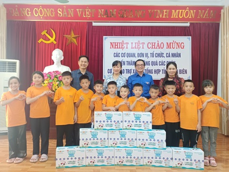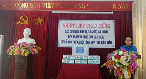 Đồng chí Mùa Chiến Thắng trao tặng 10 thùng sữa cho thiếu nhi tại cơ sở Bảo trợ xã hội tổng hợp tỉnh Điện Biên.