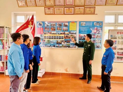 Ảnh: Chiến sĩ Đồn Biên phòng Na Cô Sa giới thiệu lịch sử hình thành và hoạt động của Bộ đội Biên phòng Việt Nam và Bộ đội Biên phòng tỉnh Điện Biên Hành trình "Tôi yêu Tổ quốc tôi" và Tháng ba biên giới năm 2025 tại xã Na Cô Sa, (huyện Nậm Pồ, tỉnh Điện Biên) là dịp để tuổi trẻ các đơn vị nâng cao nhận thức về chủ quyền biên giới quốc gia, khơi dậy lòng yêu nước và tinh thần trách nhiệm của thanh niên địa phương đối với vùng biên cương Tổ quốc. Thông qua chương trình giúp đoàn viên, thanh niên cũng được tìm hiểu vị trí, ý nghĩa của hệ thống đường biên, mốc quốc giới, tầm quan trọng của việc quản lý, bảo vệ toàn vẹn chủ quyền lãnh thổ, an ninh biên giới quốc gia, đảm bảo trật tự an toàn xã hội ở khu vực biên giới./.