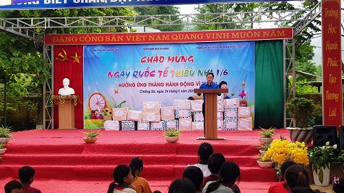Tại chương trình, Nhà Thiếu nhi tỉnh đã trao 30 suất quà, mỗi suất 100.000 đồng cho 30 học sinh có hoàn cảnh khó khăn của Trường PTDTBT Tiểu học và PTDTBT THCS, Mầm non xã Chiềng Sơ. Huyện đoàn Điện Biên Đông và Nhà Thiếu nhi trao 63 thùng quà cho các trường.