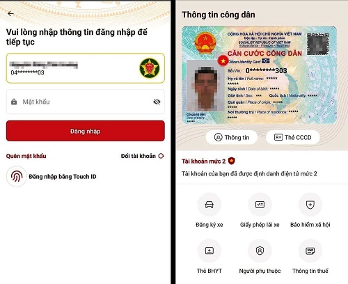 Đối với mức 2, tài khoản này có thêm thông tin về sinh trắc học của công dân (vân tay). Với tài khoản này, người dân được sử dụng tất cả tiện ích đã tích hợp các loại giấy tờ gồm: Giấy phép lái xe, đăng ký xe, bảo hiểm y tế, thanh toán nhiều loại hóa đơn điện tử (điện, nước, chuyển tiền...).