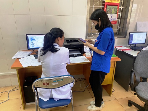 Đoàn viên thanh niên hướng dẫn y, bác sĩ cài đặt ứng dụng chữ ký số VNPT SmartCA.