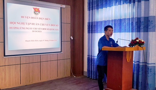 Huyện đoàn Điện Biên phát động hưởng ứng Ngày Chuyển đổi số quốc gia năm 2024. Theo đó, ngày 07/10/2024 Huyện đoàn Điện Biên tổ chức các hoạt động hưởng ứng Ngày Chuyển đổi số quốc gia năm 2024. Trong đó, tập trung vào thúc đẩy, sáng tạo, phát triển các ứng dụng số để phát triển kinh tế số; Tập huấn cho 43 đồng chí cán bộ đoàn chủ chốt cấp huyện về kiến thức chuyển đổi số (Phần mềm quản lý đoàn viên, app Thanh niên Việt Nam); phối hợp với Ngân hàng thương mại cổ phần Quân đội (MB Bank), Chi nhánh tỉnh Điện Biên hướng dẫn cài đặt thành công 62 tài khoản ngân hàng MB Bank; tuyên truyền đến gần 2.500 lượt ĐVTN thay ảnh đại diện hưởng ứng Ngày Chuyển đổi số quốc gia năm 2024,...