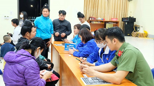 Đoàn viên thanh niên tham gia hỗ trợ người dân thực hiện dịch vụ công trực tuyến