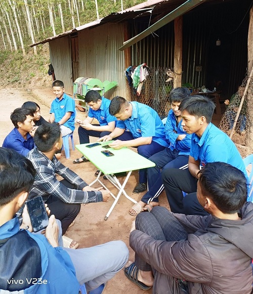 ĐVTN huyện Mường Nhé đi tới các địa bàn dân cư để hướng dẫn người dân cài đặt