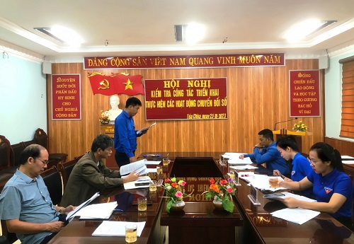 hoạt động chuyển đổi số tại Đoàn TNCS Hồ Chí Minh Thị trấn Tủa Chùa. Trước đó sáng ngày 25/10/2023, đoàn công tác Ban Chỉ đạo chuyển đổi số Tỉnh đoàn Điện Biên cũng đã có buổi làm việc và kiểm tra công tác hoạt động chuyển đổi số của Đoàn TNCS Hồ Chí Minh Thị trấn Tủa Chùa./.