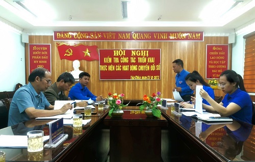 Chiều ngày 25/10/2023, đoàn công tác Ban Chỉ đạo chuyển đổi số Tỉnh đoàn Điện Biên do đồng chí Hạng A Giàng – Ủy viên Ban Thường vụ, Chánh Văn phòng Tỉnh đoàn, Phó Trưởng Ban Thường trực Ban Chỉ đạo chuyển đổi số Tỉnh đoàn Điện Biên làm trưởng đoàn đã có buổi kiểm tra với Ban Thường vụ Huyện đoàn Tủa Chùa về công tác hoạt động chuyển đổi số trên địa bàn huyện. Dự buổi kiểm tra, có các đồng chí trong Ban Thường vụ Huyện đoàn, đại diện lãnh đạo Hội LHPN huyện, đại diện lãnh đạo Phòng Văn hóa – Thông tin huyện, đại diện lãnh đạo Trung tâm Y tế huyện.