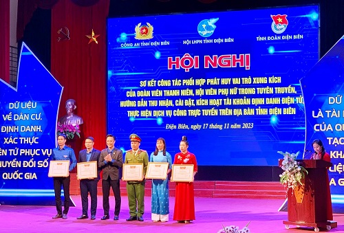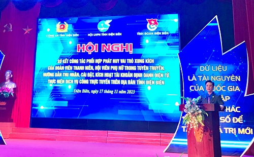 Ngày 17/11/2023, Ban Thường vụ Tỉnh đoàn phối hợp với Hội Liên hiệp Phụ nữ tỉnh, Công an tỉnh tổ chức Hội nghị sơ kết đánh giá công tác phối hợp phát huy vai trò xung kích của đoàn viên thanh niên, hội viên phụ nữ trong tuyên truyền, hướng dẫn thu nhận, cài đặt, kích hoạt tài khoản định danh điện tử, thực hiện dịch vụ công trực tuyến trên địa bàn tỉnh Điện Biên.