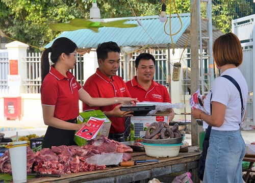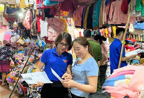 Đoàn viên, thanh niên Viettel Điện Biên hướng dẫn tiểu thương chợ Mường Phăng