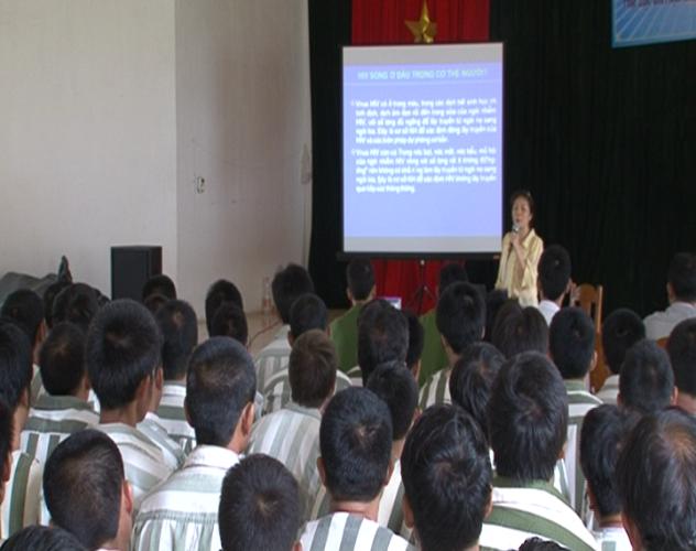 Nhằm tiếp tục phát huy vai trò, trách nhiệm của tổ chức Hội liên hiệp thanh niên Việt Nam các cấp trong công tác giáo dục cho phạm nhân độ tuổi thanh niên trên địa bàn tỉnh, ngày 17/6, Hội liên hiệp thanh niên Việt Nam tỉnh Điện Biên phối hợp với Trại giam Nà tấu, Sở tư pháp, Trung tâm phòng chống HIV-AIDS tỉnh tổ chức tuyên truyền pháp luật cho phạm nhân trong độ tuổi thanh niên đang thi hành án phạt tại Trại giam Nà Tấu – Tổng cục VIII - Bộ Công an.