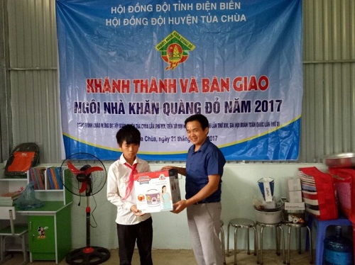 Sáng ngày 21/6/2017, Hội đồng Đội tỉnh Điện Biên tổ chức Lễ khánh thành và bàn giao Ngôi nhà Khăn quàng đỏ cho em Giàng A Thương - Lớp 5A5, Trường PTDTBT Tiểu học Xá Nhè, huyện Tủa Chùa, tỉnh Điện Biên.