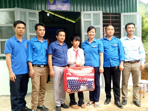 Tại buổi Lễ khánh thành và bàn giao Ngôi nhà Khăn quàng đỏ, Hội đồng Đội tỉnh Điện Biên tặng 01 nồi cơm điện, 1 bàn học, 1 quạt điện. Ban Thường vụ Huyện đoàn, Hội đồng Đội huyện Tủa Chùa và chương trình phát triển vùng huyện Tủa Chùa tặng gia đình em bộ bàn ghế, xong nồi và các vật dụng trong gia đình khác trị giá trên 4.500.000đ.