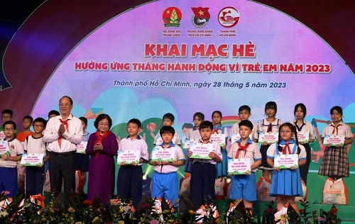 Đồng thời, Trung ương Đoàn, Hội đồng Đội Trung ương và Hiệp Hội Nhà vệ sinh Việt Nam trao tặng 01 nhà vệ sinh thông minh đạt chuẩn quốc tế và miễn phí cho người dân sử dụng tại phố đi bộ Nguyễn Huệ, trị giá 1 tỷ đồng; trao bảo trợ 6 tháng cuối năm 2023 cho thiếu nhi mồ côi do dịch Covid-19 tại 29 tỉnh, thành phố, trị giá 9,3 tỷ đồng; trao tặng các công trình, quà tặng dành cho thiếu nhi tại 25 tỉnh, thành phố trong dịp hè 2023, trị giá 16,7 tỷ đồng.