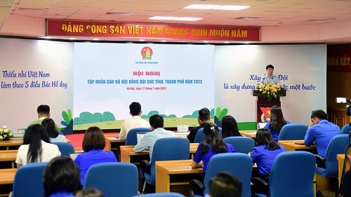 Sáng 17/7, Hội đồng Đội T.Ư tổ chức Hội nghị tập huấn cán bộ Hội đồng Đội các tỉnh, thành phố năm 2023. Hội nghị được tổ chức trực tiếp tại Trụ sở cơ quan T.Ư đoàn và kết nối trực tuyến tới các điểm cầu Hội đồng Đội cấp tỉnh, cấp huyện, cấp xã và các thầy cô giáo làm Tổng phụ trách Đội.