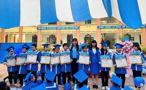 Tặng Giấy khen cho các em đội viên đạt giải trong Cuộc thi Rung Chuông vàng.