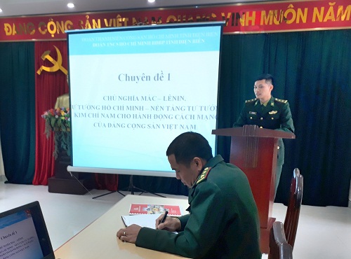 Nhận thức được ý nghĩa và tầm quan trọng của việc học tập 6 bài lý luận chính trị cho đoàn viên, thanh niên trên cơ sở mục tiêu, yêu cầu chung về công tác giáo dục chính trị trong Bộ đội Biên phòng thời gian qua Đoàn thanh niên BĐBP tỉnh đã có nhiều nỗ lực đổi mới nội dung, cải tiến phương pháp, hình thức học tập nhằm nâng cao chất lượng học tập 06 bài lý luận chính trị. Trong đó, nổi bật là việc ứng dụng công nghệ thông tin vào trong quá trình giảng dạy và học tập giúp những bài học trở nên sinh động, trực quan, dễ hiểu tạo được sự chú ý, phát huy tính tích cực của đoàn viên. Giờ đây, bên cạnh mỗi trang giáo án truyền thống, các bài giảng được thiết kế lại bằng các sile trình chiếu Powerpoint kết hợp âm thanh, hình ảnh và video của mỗi chuyên đề nhờ đó giờ học không còn khô cứng mà vẫn đảm bảo yêu cầu nội dung đề ra.