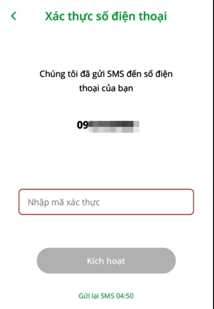 Bước 3: Ứng dụng sẽ gửi mã xác nhận về số điện thoại đã điền trước đó.