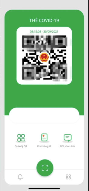 Bước 4: Sau khi xác nhận, giao diện của ứng dụng sẽ hiện ra mã QR thẻ COVID với các màu xanh - vàng - đỏ, thể hiện các dữ liệu của người dùng từ các hệ thống quản lý sức khỏe khác gồm thông tin tiêm chủng, xét nghiệm…
