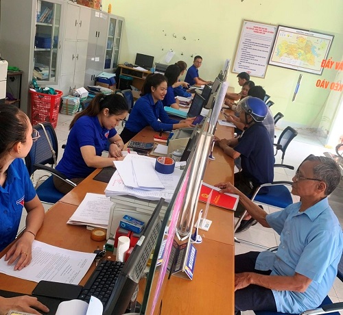 Đội hình thanh niên tình nguyện hỗ trợ người dân giải quyết thủ tục hành chính