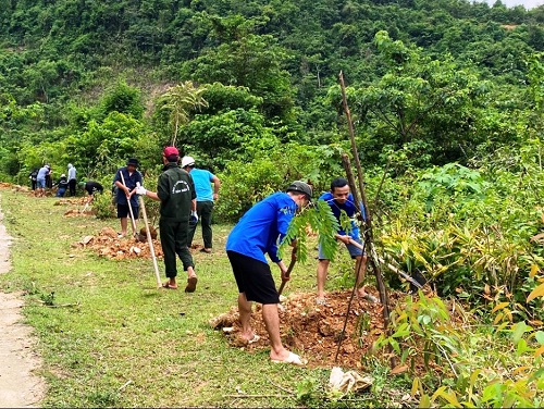 Đội hình thanh niên tình nguyện tham gia tham gia trồng cây xanh bảo vệ môi trường