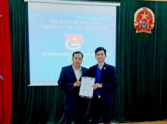 Chi đoàn Tòa án dân sự thị xã Mường Lay trao danh sách đoàn viên ưu tú năm 2021 cho cấp ủy đơn vị.
