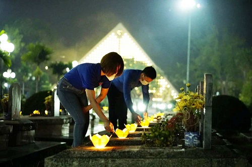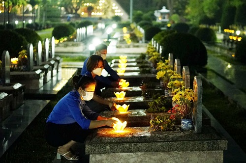 Tuổi trẻ Điện Biên dâng hương, dâng hoa và thắp nến tri ân tại Nghĩa trang Liệt sỹ A1.