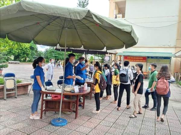 Đo thân nhiệt, phát khẩu trang miễn phí, hướng dẫn thí sinh về các biện pháp phòng, chống dịch bệnh.