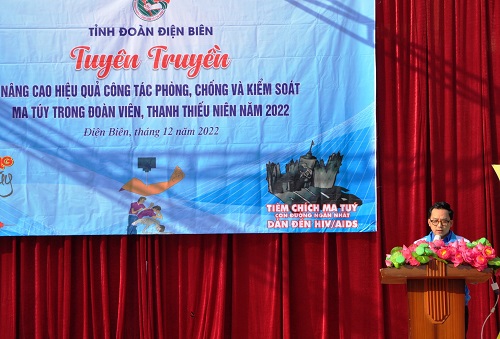 Đồng chí Mùa Chiến Thắng, Phó Bí thư Tỉnh đoàn phát biểu tại chương trình. Tại chương trình các bạn đoàn viên, thanh niên được trau dồi kiến thức pháp luật về hành vi vi phạm pháp luật mua bán, vận chuyển, tàng trữ, sử dụng ma túy; nhận diện các loại ma túy mới và tác hại của các loại ma túy đó; kỹ năng nhận diện và xử lý các tình huống nguy cơ liên quan đến ma túy; giảm kỳ thị đối với người sử dụng ma túy, người nghiện ma túy, người nhiễm HIV/AIDS…