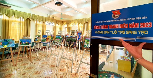 Công trình thanh niên “Không gian tuổi trẻ sáng tạo” tại nhà KLF - Trường CĐSP Điện Biên. Sau cuộc thi, các sản phẩm được tập kết, trưng bày, triển lãm tại nhà KLF, Trường CĐSP Điện Biên để cán bộ, giảng viên và đoàn viên sinh viên nhà trường tham quan.
