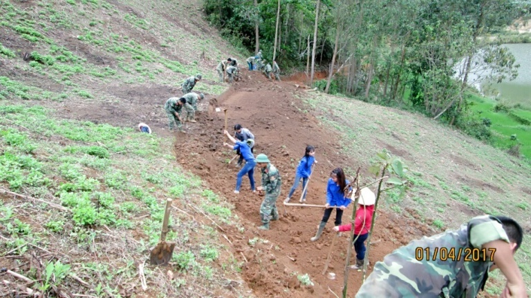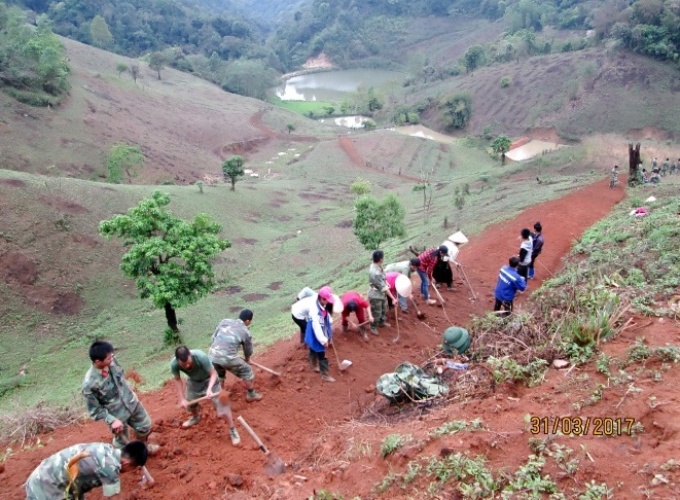 Đoàn viên thanh niên tham gia hoàn thiện "Con đường Thanh niên" tại xã Tà Lèng