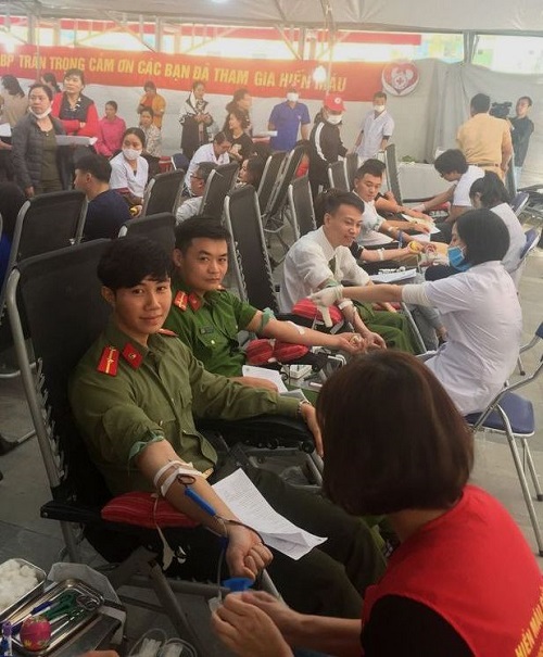ĐVTN Công an thành phố Điện Biên Phủ tham gia hiến máu tình nguyện.