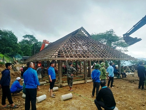 ĐVTN xã Nong U hỗ trợ di dời nhà trong khu vực sạt lở nguy hiểm sau cơn bão số 3