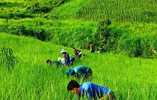 ĐVTN xã Háng Lìa tổ chức gặt lúa giúp gia đình ông Giàng Sống Dơ có con là Giàng A Manh