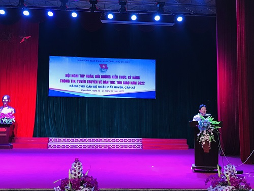 Hội nghị tập huấn, bồi dưỡng kiến thức, kỹ năng thông tin, tuyên truyền về dân tộc, tôn giáo năm 2022. Hội nghị nhằm đẩy mạnh thông tin, tuyên truyền về dân tộc và tôn giáo; các quan điểm, đường lối của Đảng, chính sách, pháp luật của Nhà nước về dân tộc, tín ngưỡng, tôn giáo; những giá trị của tôn giáo đối với đời sống xã hội, góp phần phát huy sức mạnh của khối đại đoàn kết dân tộc, đoàn kết tôn giáo trong sự nghiệp xây dựng và bảo vệ Tổ quốc; xây dựng nhận thức đúng đắn của xã hội về dân tộc, tín ngưỡng, tôn giáo và các chính sách, pháp luật về dân tộc, tín ngưỡng, tôn giáo; tăng cường đoàn kết dân tộc, đoàn kết tôn giáo trong thực hiện các mục tiêu phát triển kinh tế - xã hội và bảo vệ Tổ quốc, đồng thời phát huy những giá trị của tín ngưỡng, tôn giáo trong đời sống xã hội...