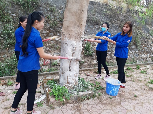 ĐVTN Trường Cao đẳng Y tế Điện Biên quét vôi gốc xanh quanh khu vực trường