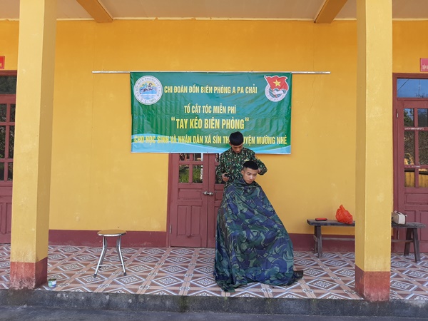 ĐVTN Bộ đội Biên phòng tỉnh cắt tóc miễn phí cho nhân dân trên địa bàn.