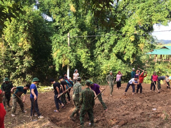 Chi đoàn Đồn Biên phòng Nậm Kè san nền, dựng nhà cho gia đình chính sách