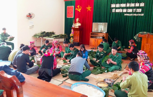 Trong dịp Tết Nguyên đán Canh Tý năm 2020, chi đoàn các Đồn Biên phòng đã tham mưu cho đơn vị tổ chức Chương trình “Xuân Biên phòng ấm lòng dân bản” cho nhân dân trên địa bàn vui tết đón xuân; vận động các cơ quan, tổ chức và các nhà hảo tâm thăm hỏi và chúc Tết tặng 593 suất quà, trị giá 172,05 triệu đồng; tham gia tổ chức “Ngày hội bánh chưng xanh cho người nghèo biên giới” gói, luộc và tặng 3700 chiếc bánh chưng trị giá 185 triệu đồng cho 593 hộ gia đình chính sách, gia đình có hoàn cảnh khó khăn, người có uy tín trên địa bàn khu vực biên giới; tặng tiền và 106 suất quà cho các em học sinh trong Chương trình “Nâng bước em đến trường” và “Con nuôi đồn Biên phòng” trị giá 67,4 triệu đồng”. Đồng thời, đón 62 em học sinh trong Chương trình “Nâng bước em đến trường” và “Con nuôi đồn Biên phòng” lên ăn Tết tại các đơn vị. Mời 300 người dân nghèo ở khu vực biên giới lên ăn tết tại các đồn Biên phòng. Tham gia khám, cấp thuốc miễn phí cho 435 người, trị giá 39,55 triệu đồng. Tổ chức và tham gia giao lưu, thi các trò chơi dân gian như: Văn hóa văn nghệ, kéo co, gói bánh chưng, đẩy gậy, ném khòn, múa khèn… được 26 buổi với tổng số trên 2300 lượt người dân tham gia.