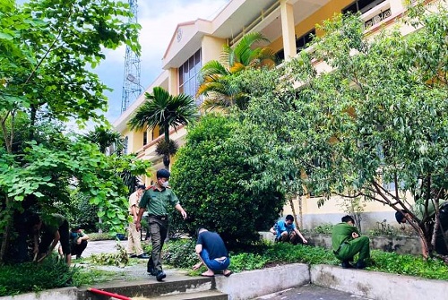 Đoàn viên chăm sóc cây xanh trong đơn vị.