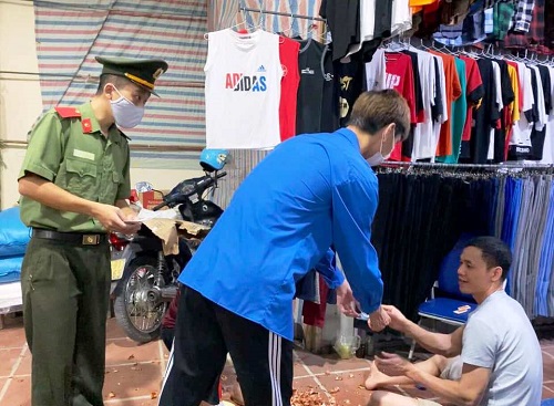 ĐVTN phát khẩu trang, tuyên truyền cho các hộ kinh doanh không lấn chiếm lòng đường.