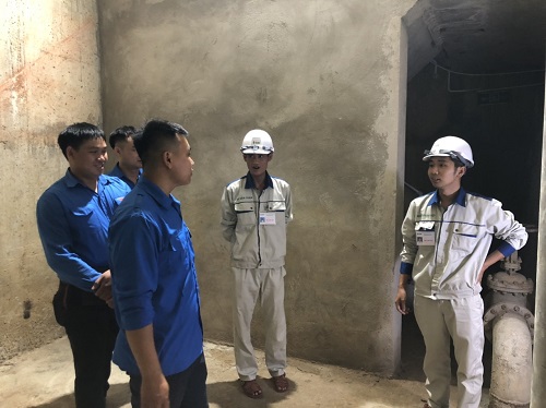 Thăm quan khu vực đập ngăn nước và hầm tuabin. Sau khi trao đổi, thăm hỏi, đoàn đã di chuyển vào khu vực cửa xả, gian máy và các hạng mục khác của Nhà máy Thuỷ điện Mường Luân 1 để tham quan, tìm hiểu về quá trình vận hành, cũng như vai trò của Thuỷ điện Mường Luân 1 trong hệ thống điện quốc gia, dưới sự giới thiệu chi tiết, tận tình của đồng chí phụ trách.