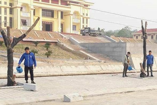 ĐVTN huyện Điện Biên tham gia chăm sóc cây xanh.