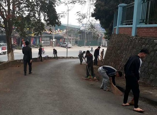ĐVTN huyện Điện Biên Đông tham gia vệ sinh môi trường.