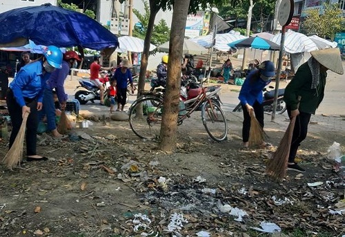 ĐVTN khối cơ quan và doanh nghiệp tỉnh tham gia vệ sinh môi trường.