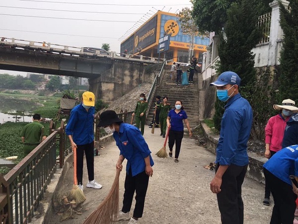 ĐVTN thành phố Điện Biên Phủ tham gia vệ sinh môi trường hai bên bờ sông Nậm Rốm.