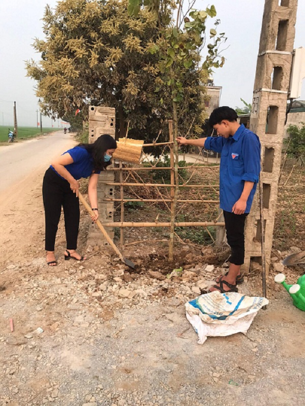 ĐVTN huyện Điện Biên tham gia trồng và chăm sóc cây hoa Ban trong Ngày Chủ nhật xanh.