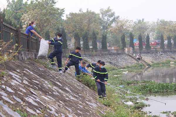 ĐVTN Công an tỉnh tham gia thu gom rác khu vực sông Nậm Rốm.