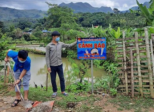 Các cấp bộ đoàn huyện Mường Ảng tổ chức cắm biển cảnh báo nguy hiểm